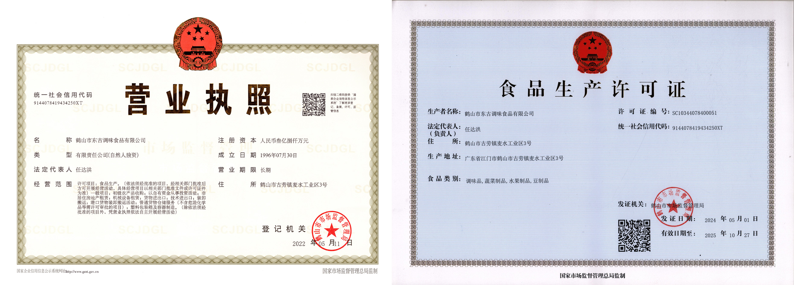 鶴山市東古調(diào)味食品有限公司現(xiàn)位于廣東省鶴山市古勞鎮(zhèn)麥水工業(yè)區(qū)3號,前身為始創(chuàng)于清>朝道光三十年(公元一八五〇年)的調(diào)珍醬園,原設(shè)在鶴山縣古勞鎮(zhèn)古勞墟,迄今已有一百六十多年歷史。